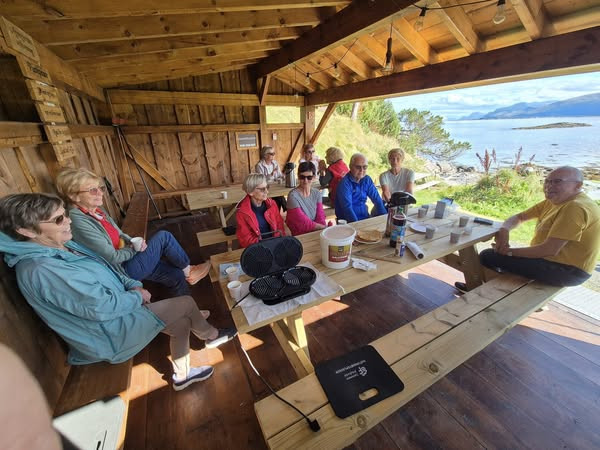 Nok eit triveleg treff i naturmøteplassen i Sandvika på Roald i dag. Britt og Arnfinn var vertskap og takkar for godt og hyggeleg frammøte.