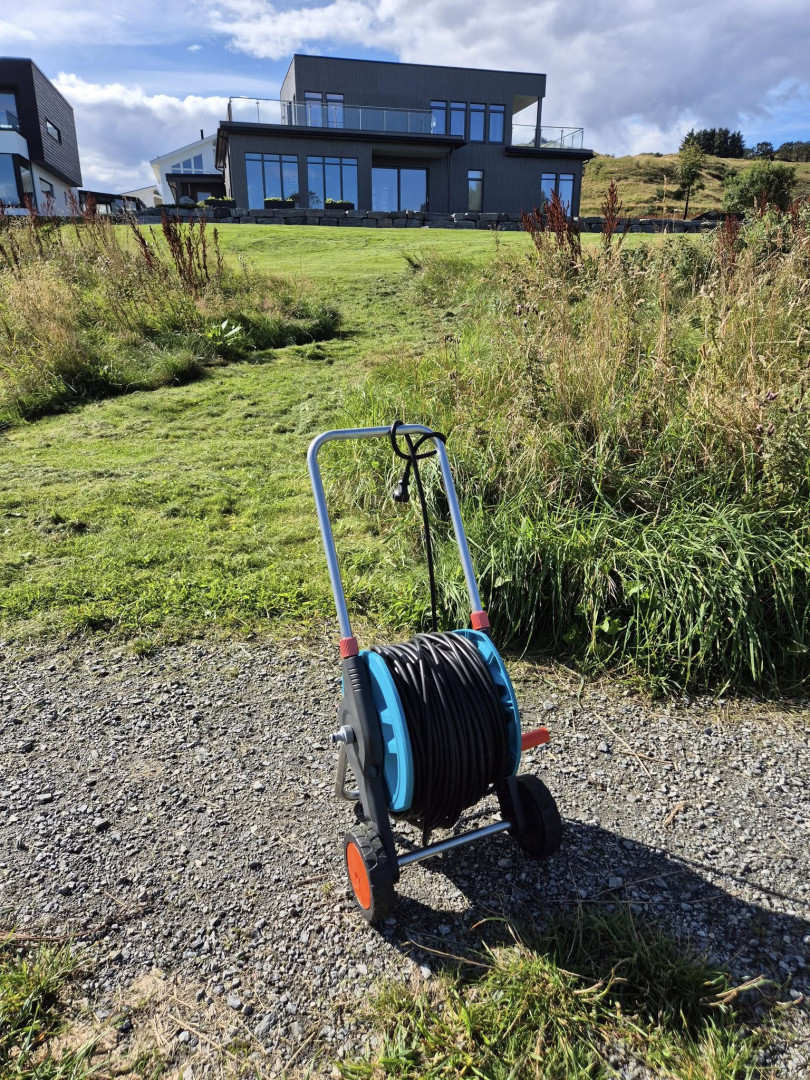 Fire personar i tillegg til vertskapet trassa regnvêret og fekk servert kaffi og vafler i Sandvika 17. juni