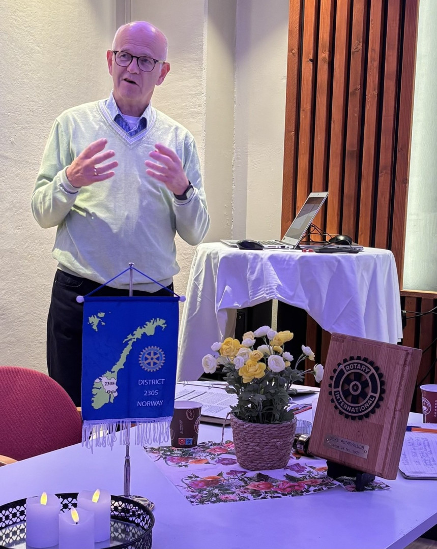 Torsdag 23. oktober fekk klubben besøk av distriktsguvernør Morten Mo.. Det var "stinn brakke" i lokala til Vigra Aktivitets- og Frivilligsentral.